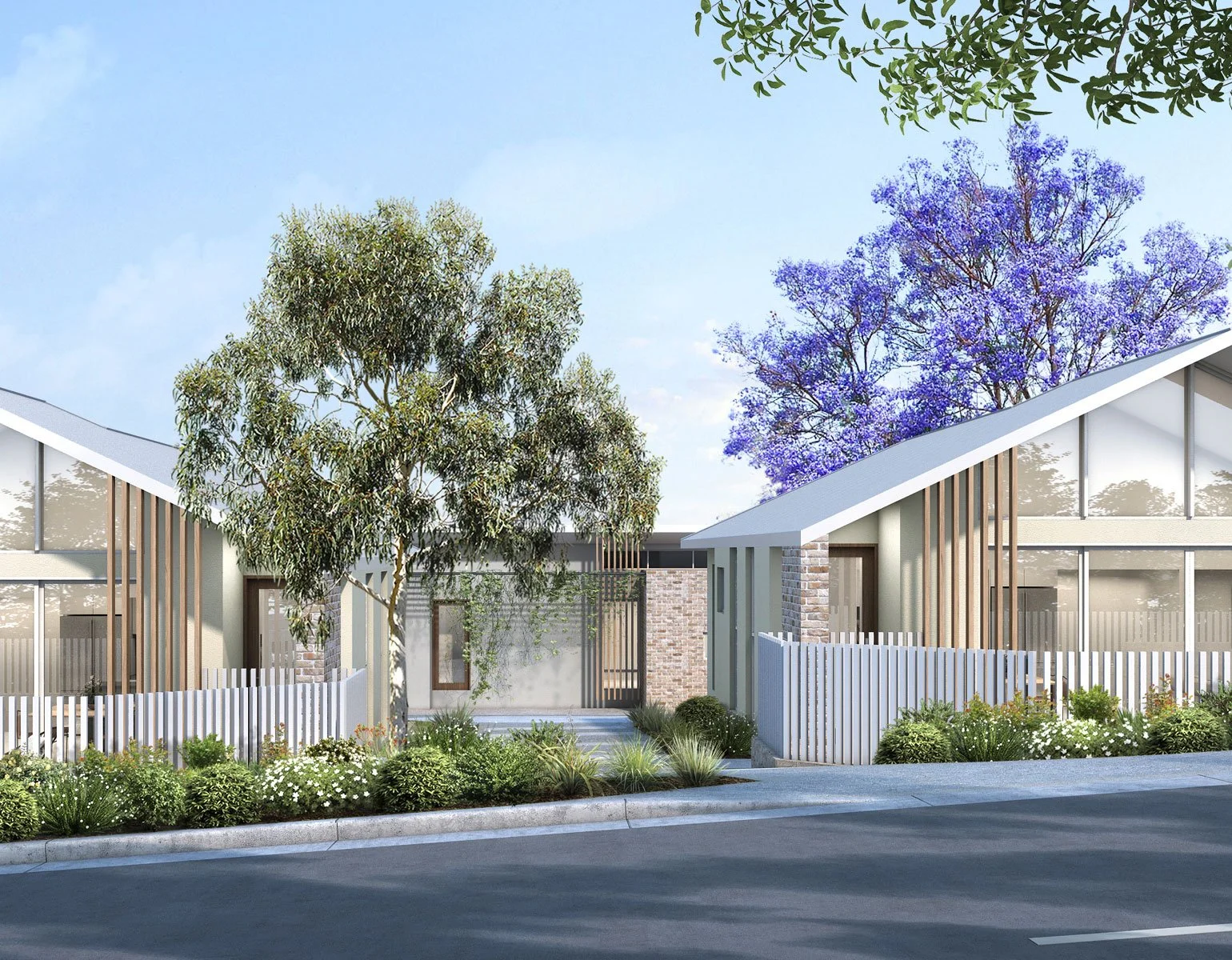 A long site, with direct access to a dual use path on one side, and a street frontage on another provided unique opportunities to blend the existing suburban context with an infill built form.